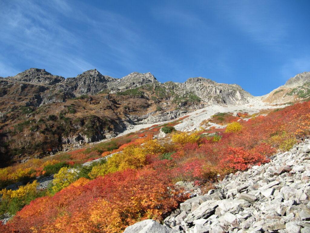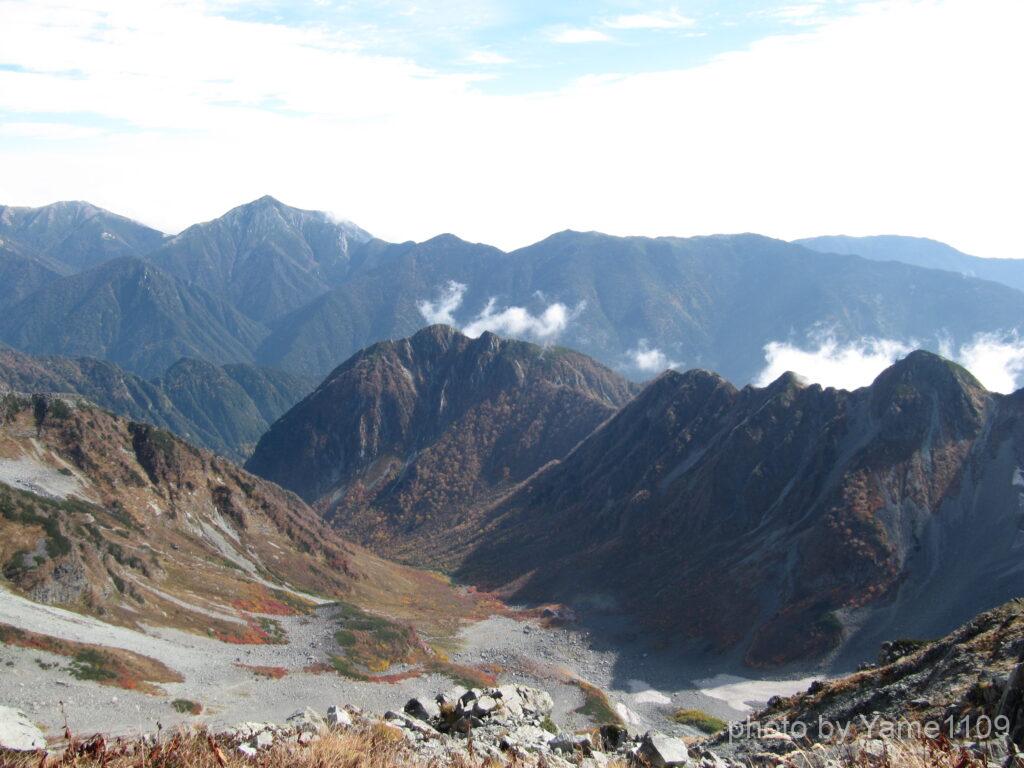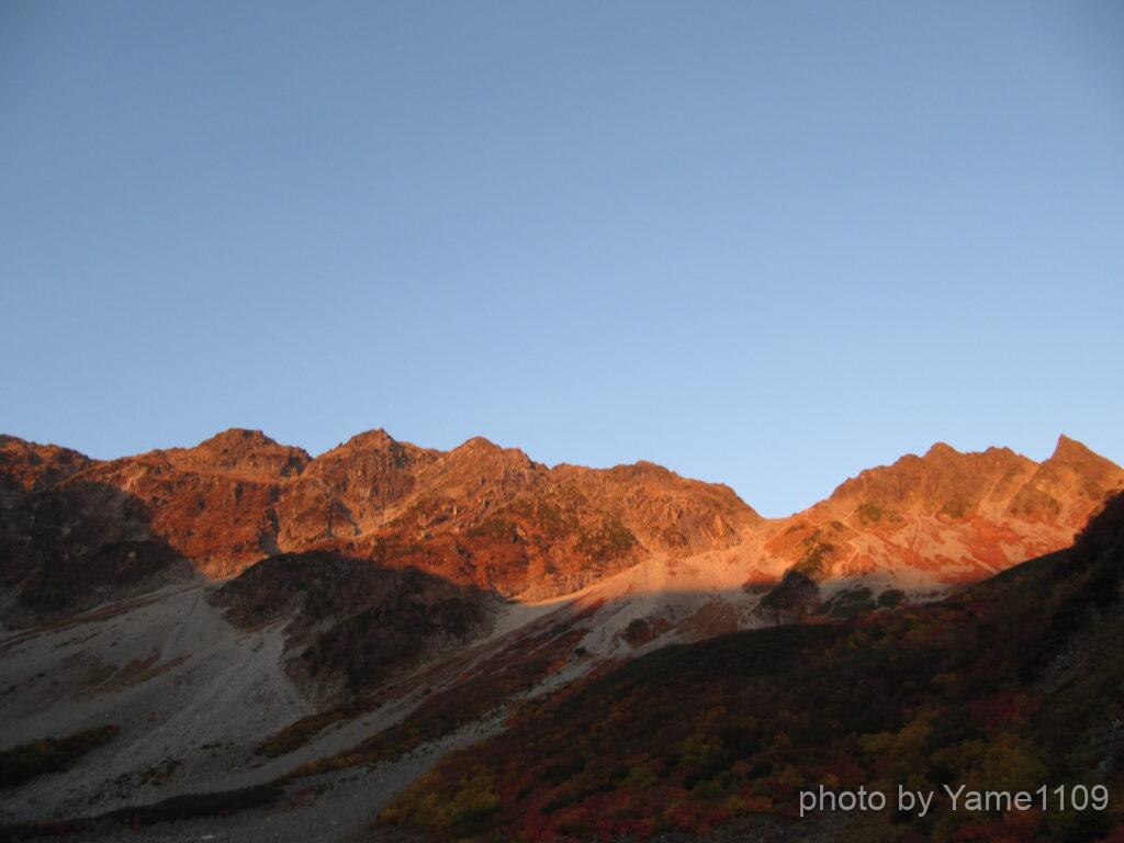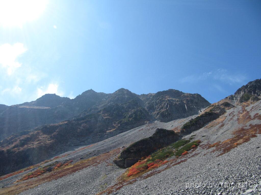 しかも、懐には日本一と称される紅葉のメッカ 涸沢を抱え、北は 「鳥も通わぬ」 と謡われた滝谷の大岩壁を擁し、さらには大キッレトを隔て、皆のアイドル槍ヶ岳を従える という無双っぷり。