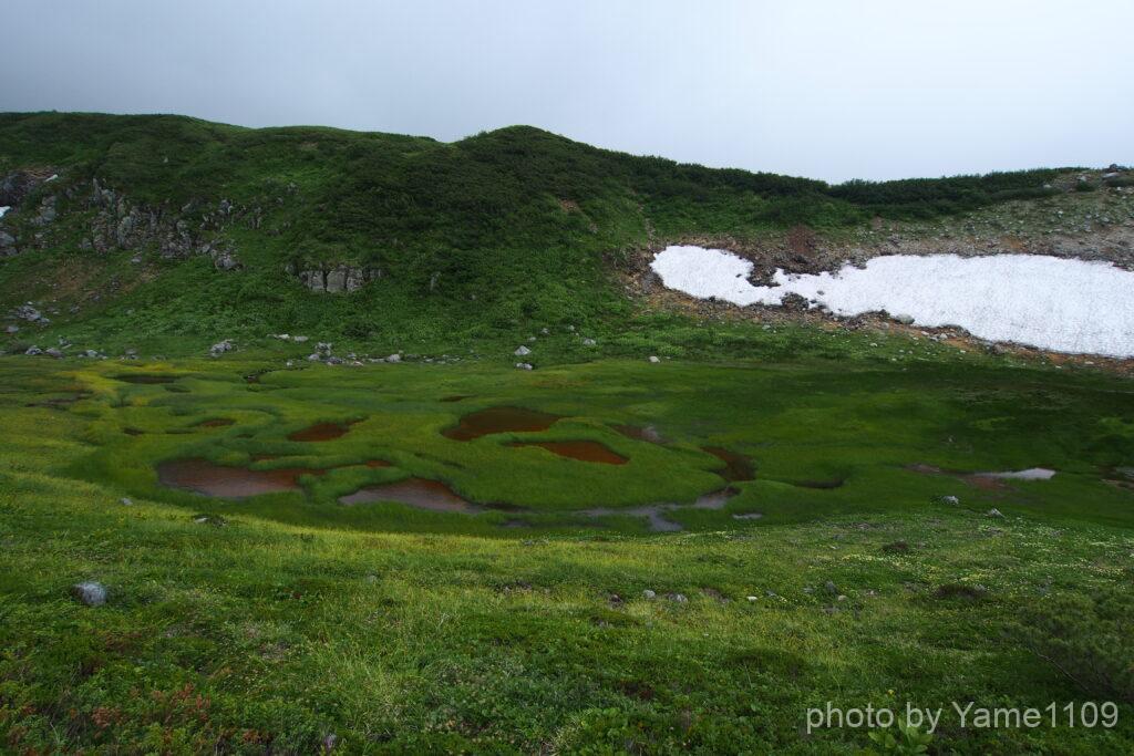この辺りはイワイチョウの群落で、秋には黄葉が見事です。